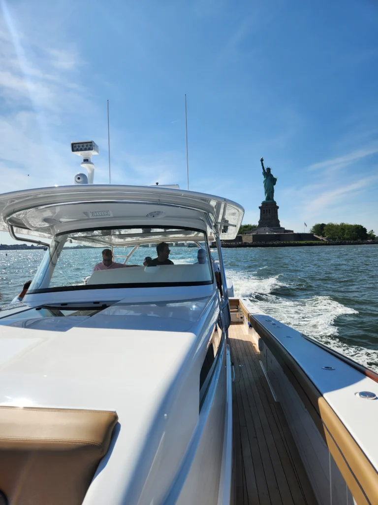 While the V-55 was completed at the Viking Yachts facility in New Jersey, the family’s first encounter with their finished masterpiece came at a dock in Manhattan. They spent three days exploring the New York waterways and Long Island Sound before beginning the delivery trip home.